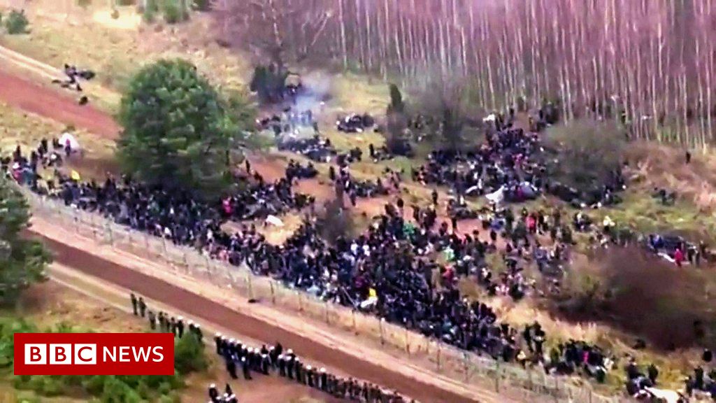 Hundreds of migrants have been filmed at Belarus’ border with Poland.