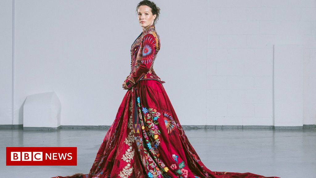 More than 240 people took part and embroidered an image onto the dress that represents themselves and their culture.