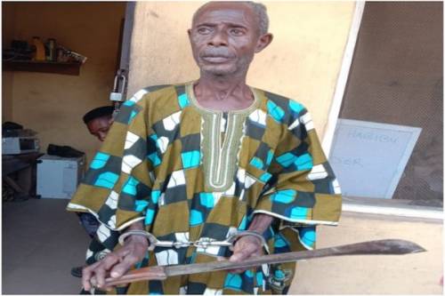 The suspect reportedly got enraged and attacked the aged man with a cutlass, killing him in the process.