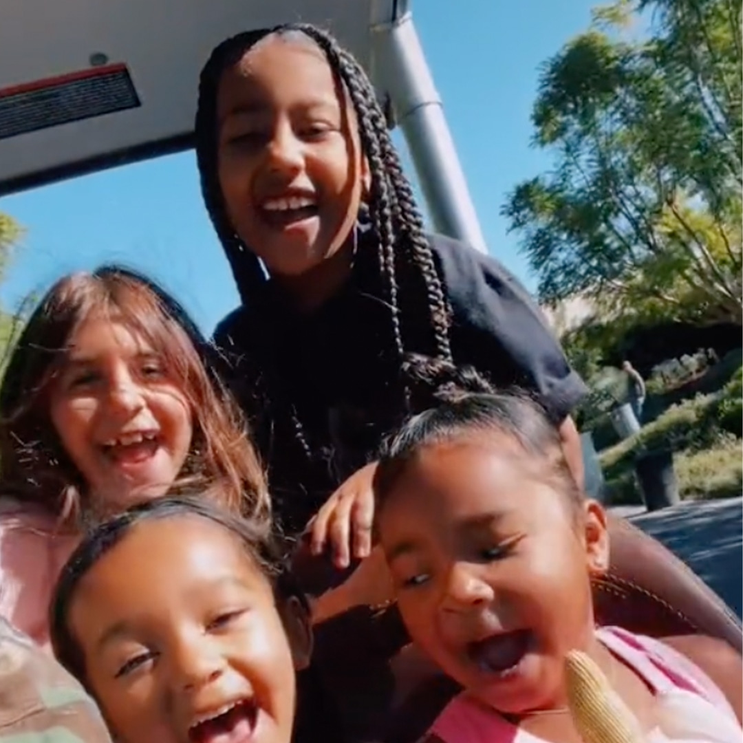 In case you missed it, Kim Kardashian and her oldest daughter North West, 8, debuted their very own joint TikTok account on Nov. 26 and the mother-daughter duo have already shared tons of cute footage to the platform. Their latest must-see video? A quick golf cart ride featuring North alongside her younger sister, Chicago, 3, and cousins Penelope Disick, 9, and True Thompson, 3.