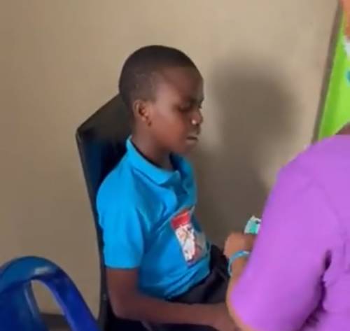 The 12-year-old boy, from the video, was seen writhing in pain while bleeding from his mouth, his teeth seems broken with some sort of candida Albicans appearing on the tip of his lips.