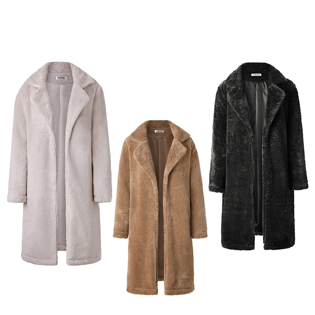 This long faux sherpa teddy coat from Angashion is super versatile and comes in a variety of colors including army green, caramel, dark camel and red. It’s made of cotton and polyester, features an open front and a lapel, and is about knee-length. It would look great over a chunky sweater and jeans or a cute skirt and boots. It’s so stylish, it’ll immediately glam up any outfit of your choosing. Best part is, it’s less than $50.