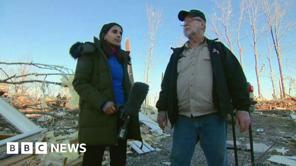 This tornado survivor shows BBC Washington correspondent Nomia Iqbal the remains of his house – and what he was able to retrieve from the rubble.