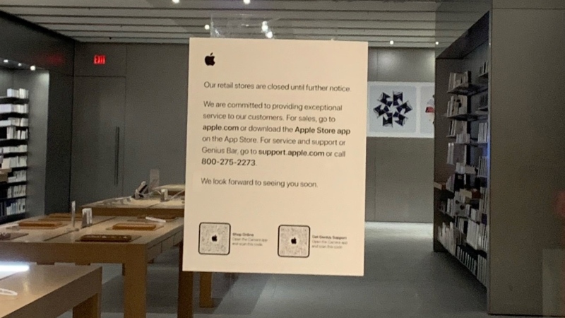 The Apple Store in Ottawa’s CF Rideau Centre mall is closed due to COVID-19.