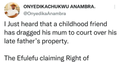 ”I Just heard that a childhood friend has dragged his mum to court over his late father’s property.