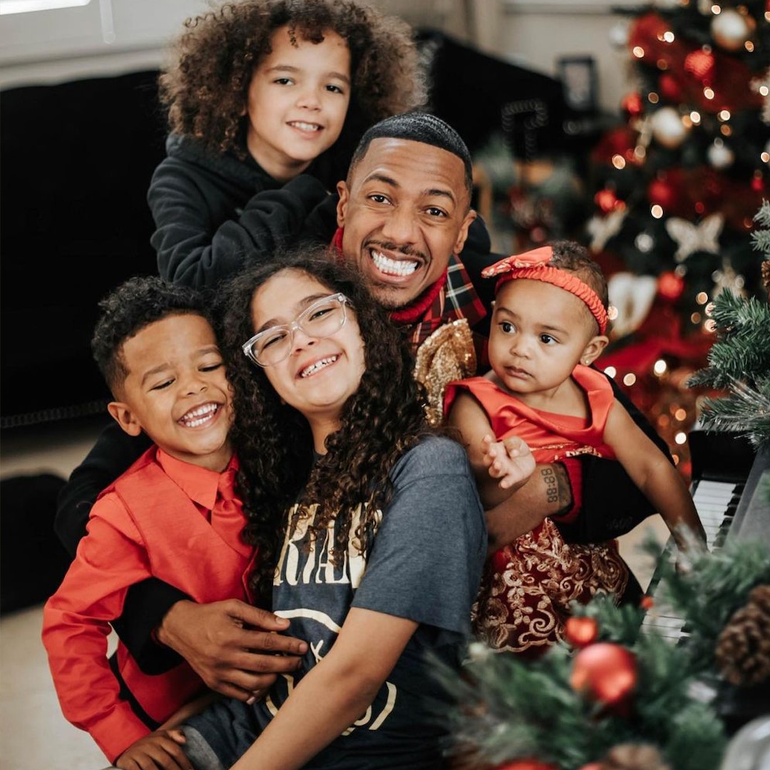 One image captured The Masked Singer host flashing a wide smile as his children snuggled with him, including 10-year-old twins, Moroccan Cannon and Monroe Cannon, who he shares with ex Mariah Carey, as well as Golden “Sagon” Cannon, 4, and Powerful Queen Cannon, 12—his kids with ex Brittany Bell. Nick and his little ones posed together by a beautifully decorated Christmas tree.