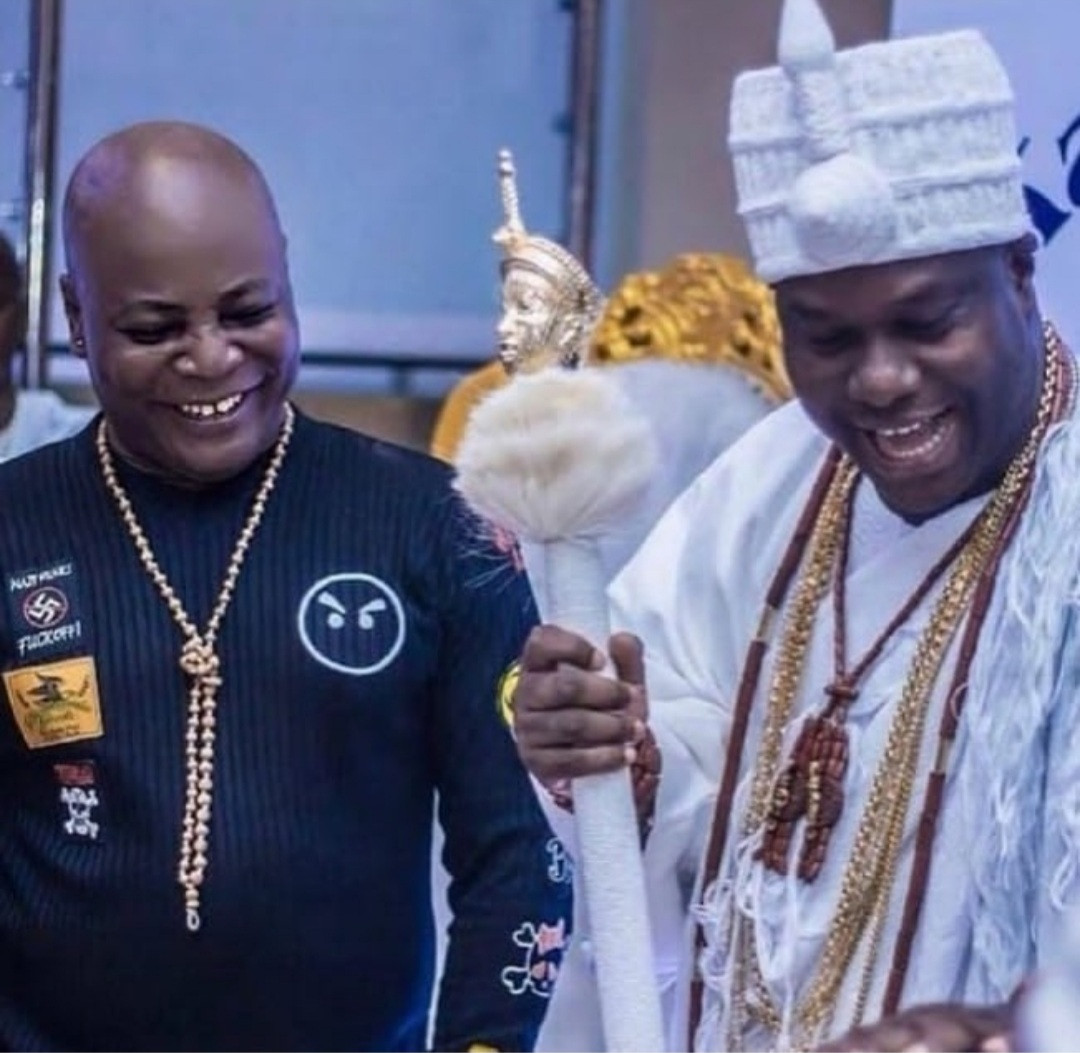 Area Fada shared a photo he took with the Ooni of Ife and he asked how a man of his status can be dumped by his wives on social media.