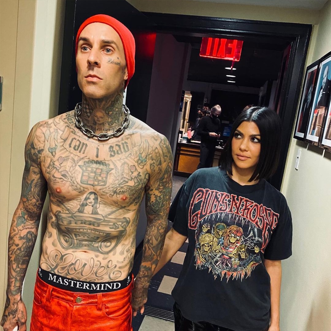 The pic featured a faux chest butterfly tattoo and long rose sleeves on Kourtney to match Travis’ ink. The pic certainly had us do a double take!