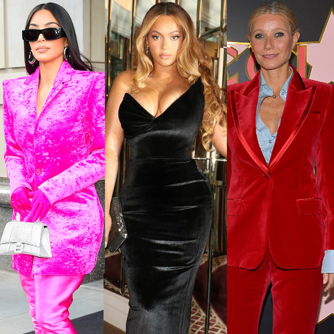 Kim Kardashian has been wearing a ton of velvet recently, usually opting for the catsuits or a blazer with matching trousers. Hailey Bieber opted for a catsuit recently as well. Gwyneth Paltrow, Bella Hadid, Rachel Lindsay, and Kyle Richards, recently rocked velvet blazers too. Reese Witherspoon and Nicole Kidman accessorized with velvet hair ribbons. Rihanna wore a blue, velvet shirt.