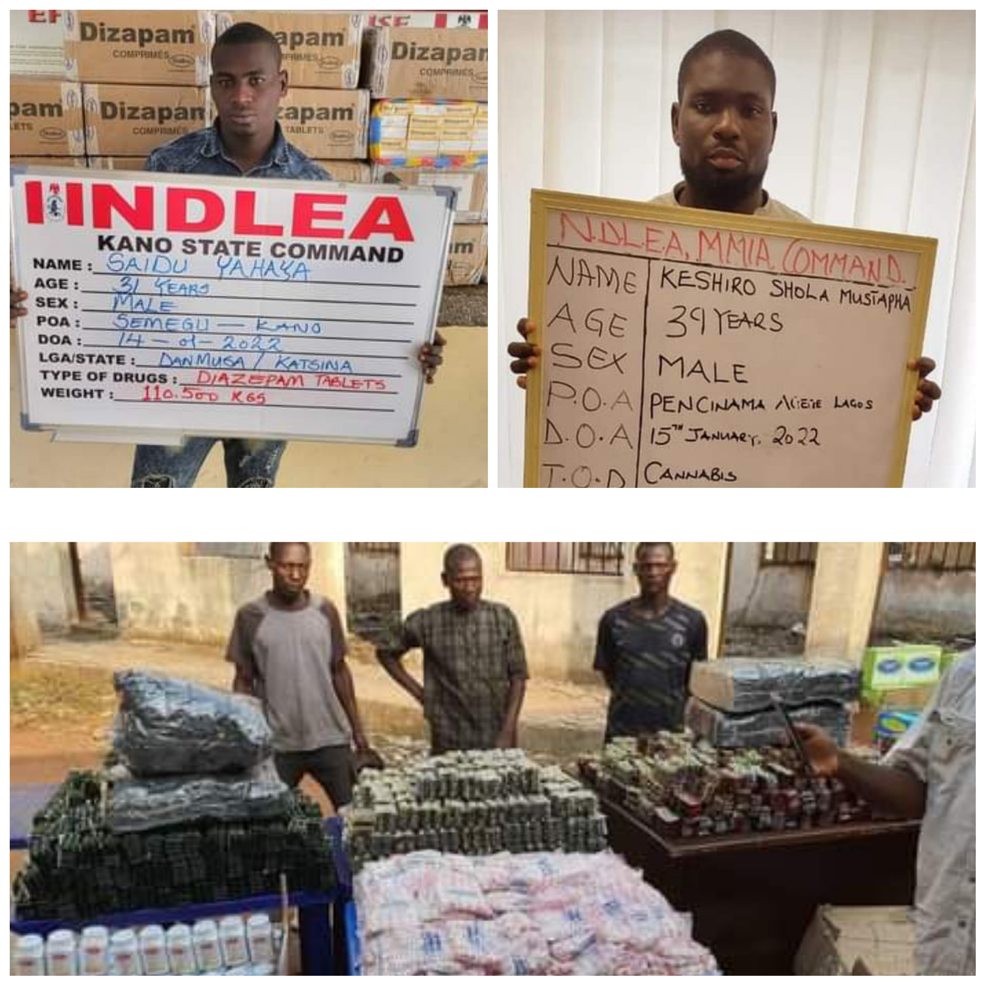 In Plateau state, a fake security agent, Babagana Maaji has been arrested through a controlled delivery of 5.6kg cannabis from Lagos. The suspect based in Damaturu, Yobe state, was nabbed following the interception of a commercial bus bringing the consignment from Lagos to Gombe in Mararaban Jos on 8th Jan.