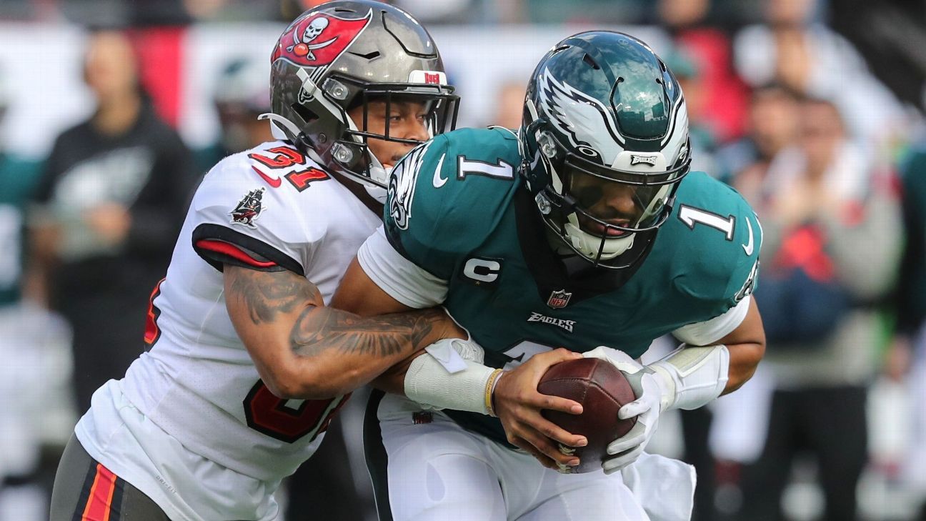 TAMPA, Fla. — Philadelphia Eagles coach Nick Sirianni gave quarterback Jalen Hurts a strong endorsement following Sunday’s 31-15 playoff loss to the Tampa Bay Buccaneers, as attention turns to whether the team will address his position this offseason.