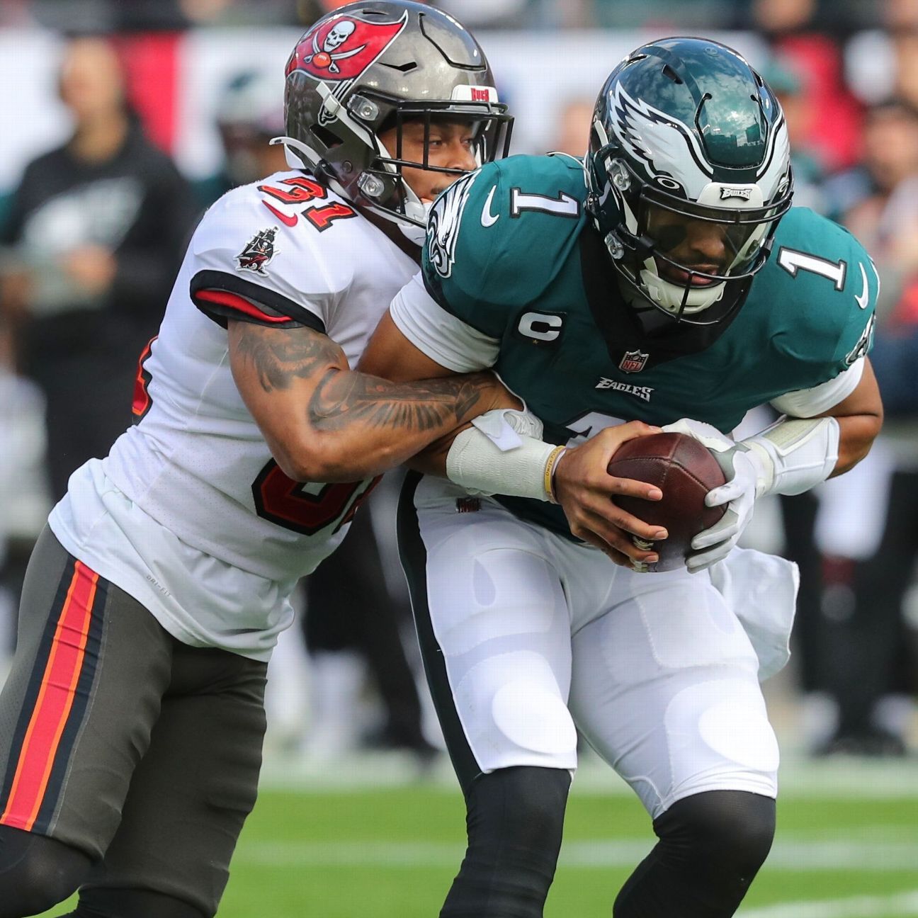 Hurts, who was dealing with a high left-ankle sprain since late November, became the youngest quarterback in franchise history to start a playoff game. He struggled in Sunday’s 31-15 NFC wild-card loss to the Tampa Bay Bucs, going 23-of-43 for 258 yards with a touchdown and two interceptions.