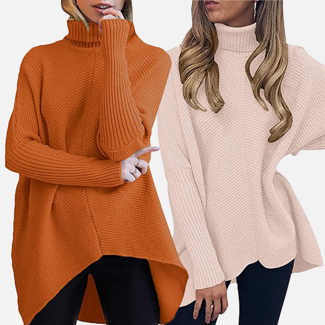 The best-selling Anrabess turtleneck sweater on Amazon checks off all the boxes. It’s so chic with its asymmetric hem, batwing sleeves and oversized fit. It comes in a wide variety of colors including black, pink, mint green, rust and white. Right now, some sizes and color combinations are on sale for as low as $20.