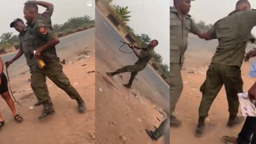 The tweet reads, “SGT Jude Ogudu and four others spotted in the viral video assaulting a lady have been arrested by the Edo State Police Command.