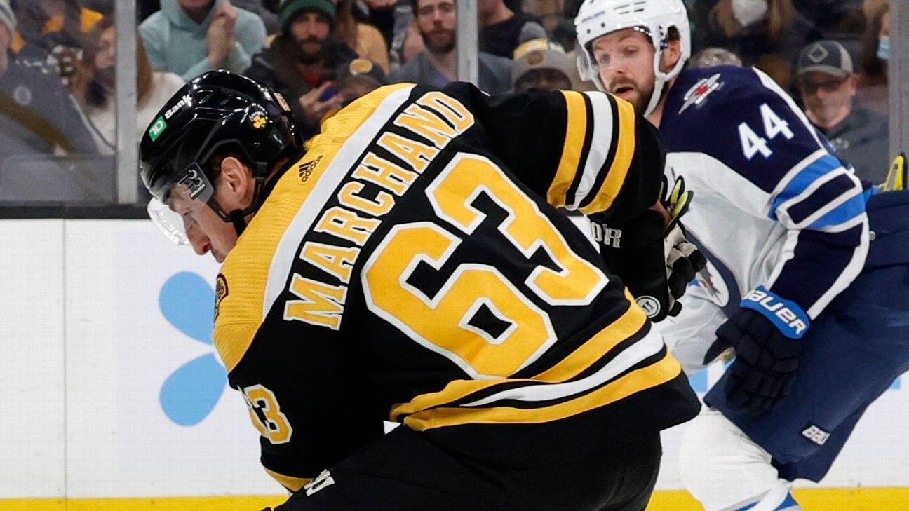 Marchand had been hit from behind into boards by Washington’s Garnet Hathaway, a check that Boston coach Bruce Cassidy called a “cheap” play. Cassidy said Friday that Marchand would be out at least one game.