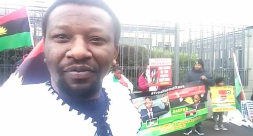 One of the protesters said, “We are holding a protest; it is going on at Federal Republic of Ireland, in Dublin. We are in front of British Embassy, at Merrion Road, Dublin 4, for the quest of release of leader of the Indigenous People of Biafra, Mazi Nnamdi Kanu. Follow us for this event on all platforms. Thank you.”