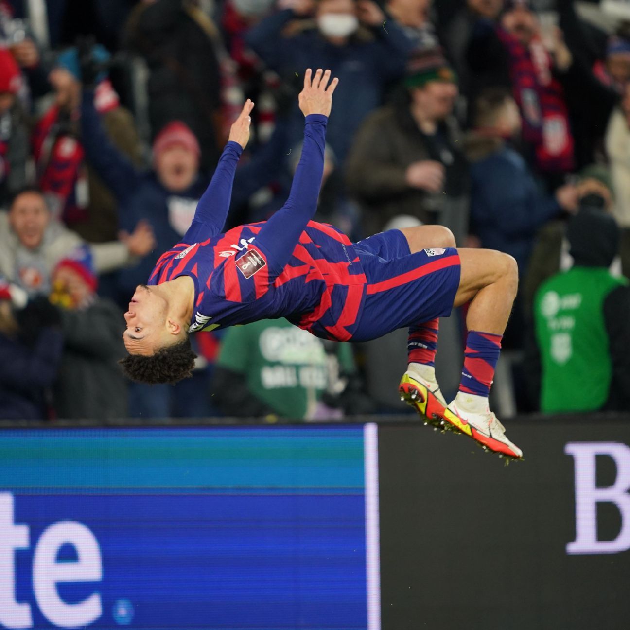 Antonee Robinson celebrated his goal for the United States with an acrobatic backflip, followed by a front spring, and then a feigned leg injury.