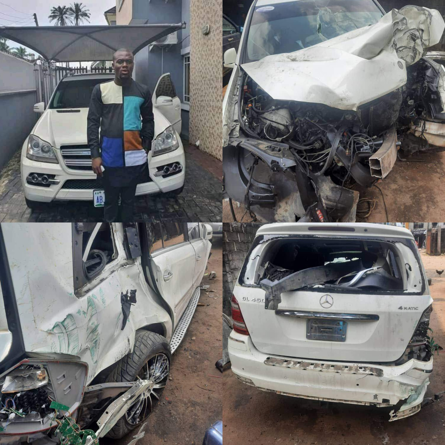 Francis David Matthew shared photos of his car before and after the accident and revealed that he survived the accident without a scratch on any part of his body.