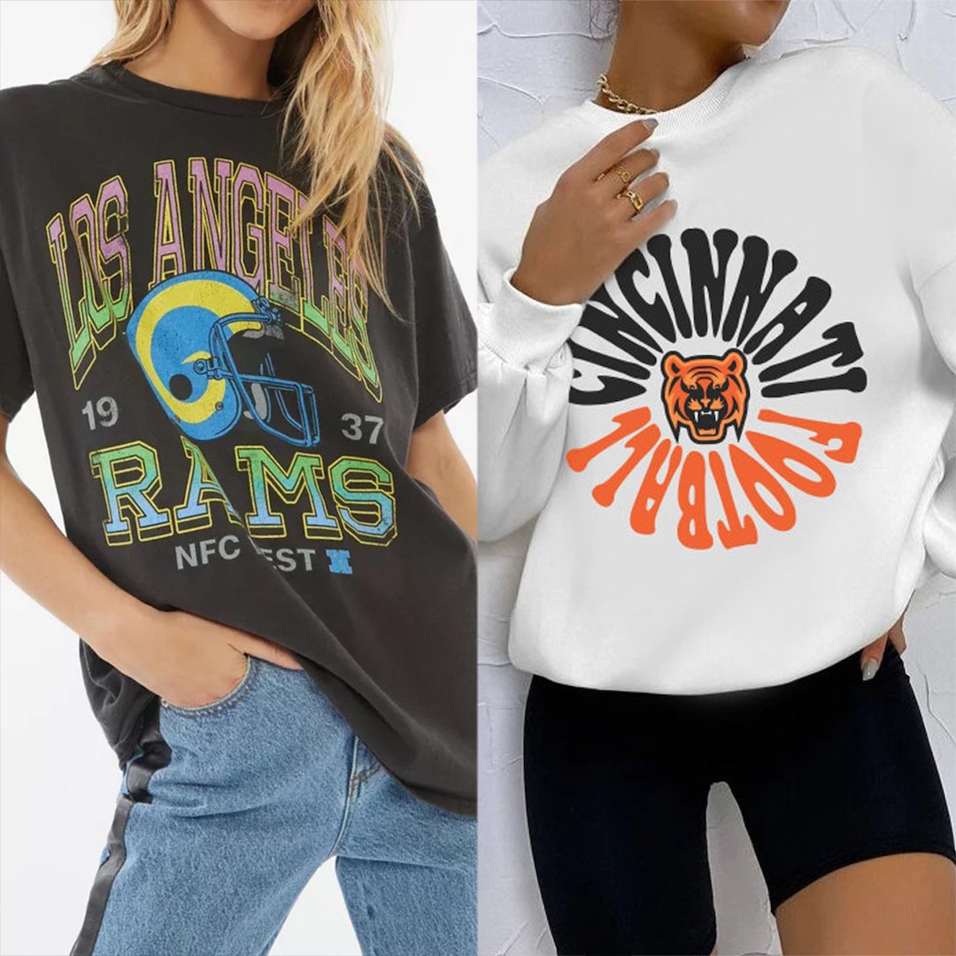 Regardless if you’re a die-hard sports fan or someone who just enjoys the food and social aspects of the big game, you’re going to need a spirited outfit for your Super Bowl watch party. For this reason, we rounded up tees, sweatshirts, dresses, accessories, jerseys and more outfit ideas that will help you score style points at your shindig.