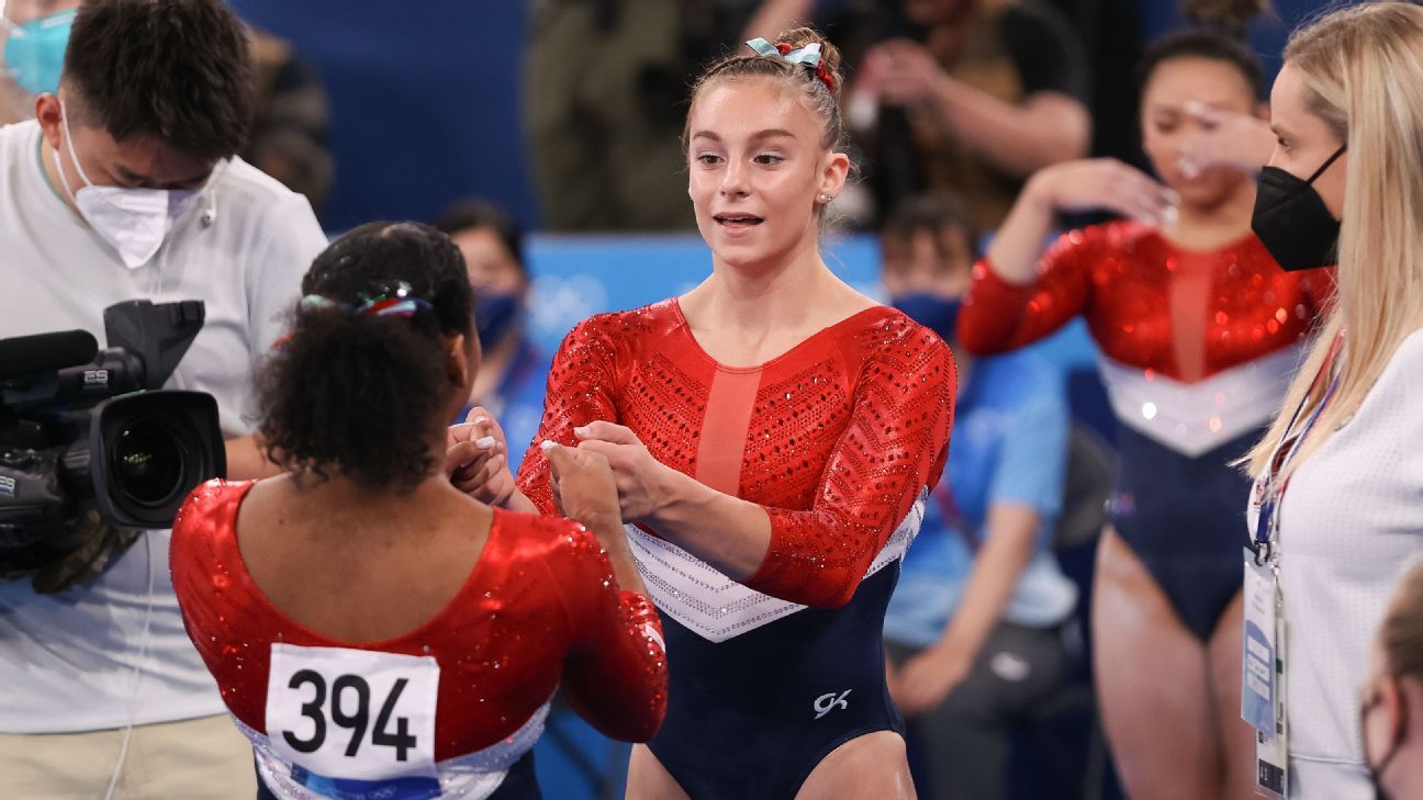 Finally, Chiles brought the house down in her home arena with a floor routine featuring a lofty double layout mount and a superwoman dive roll, scoring a perfect 10.0 of her own: