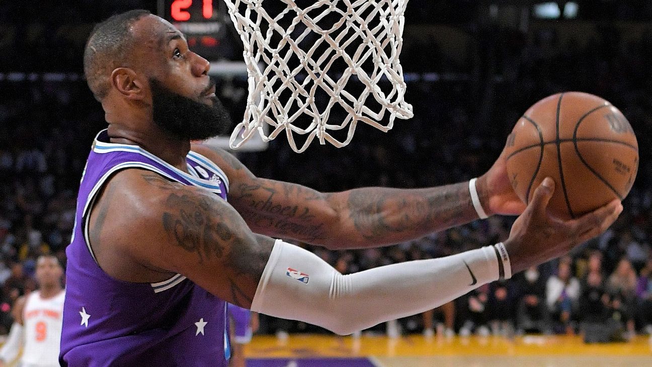 LOS ANGELES — LeBron James picked things back up right where he left them, continuing his offensive surge with 29 points in the Los Angeles Lakers‘ 122-115 overtime win over the New York Knicks on Saturday following a five-game absence with swelling in his left knee.
