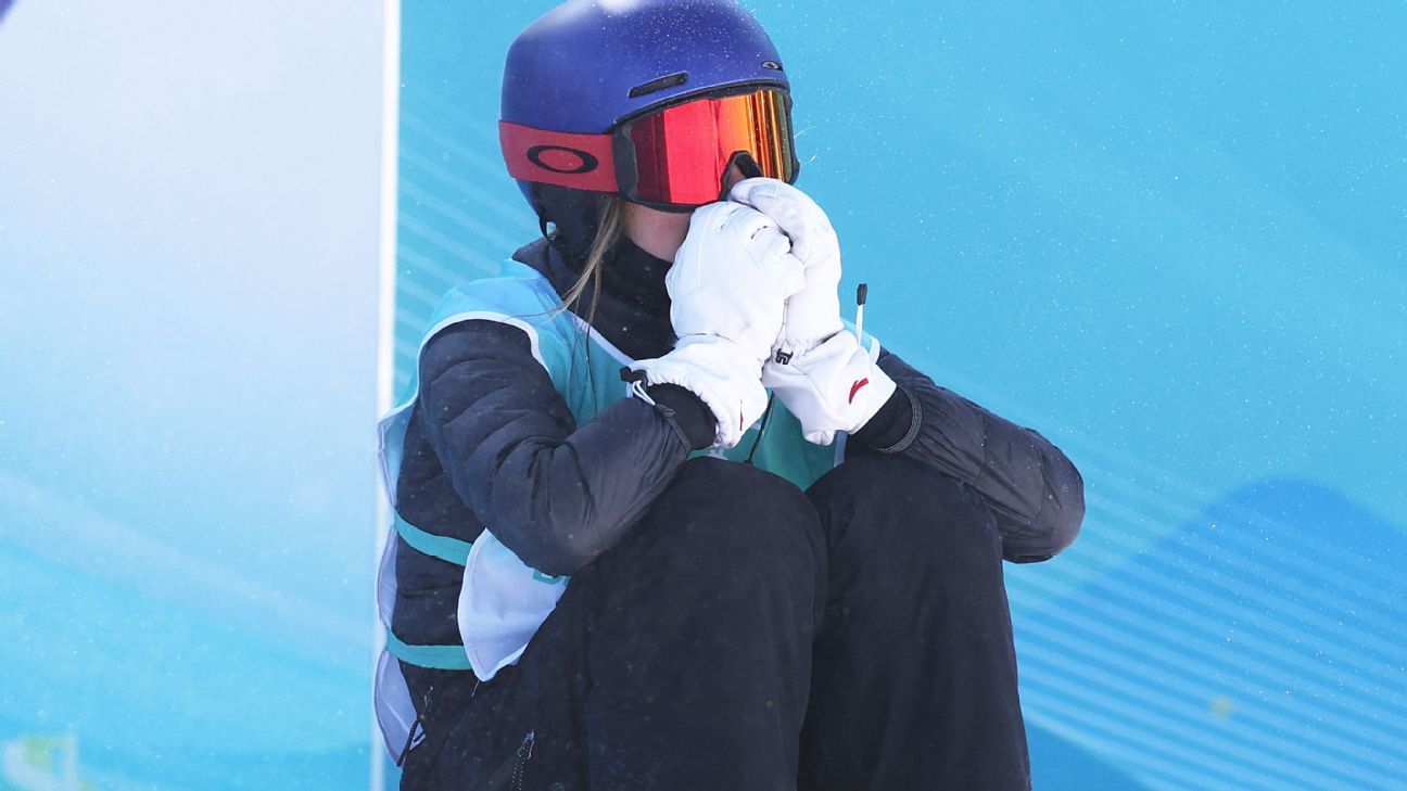 The 18-year-old shrieked when she landed the jump, then dropped to her knees when her score of 94.50 was announced. As she coasted into her stop, skiing backwards, she was holding her hands on top of her helmet in disbelief, as onlookers held a China flag in the stands.