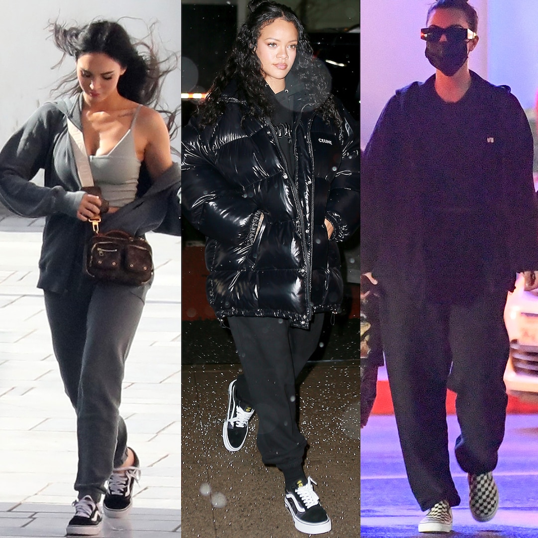 If you feel like you’ve seeing Vans a lot lately, it’s because you probably have. Rihanna has been spotted in them many times, and of course, she’s worn some from her man A$AP Rocky’s collab with the brand. Rihanna, Megan Fox, Kourtney Kardashian, Ariana Grande, and Emily Ratajowski went for the Old Skool Vans in white and black. Sophie Turner wore the Old Skool Vans adorned with a flame design.