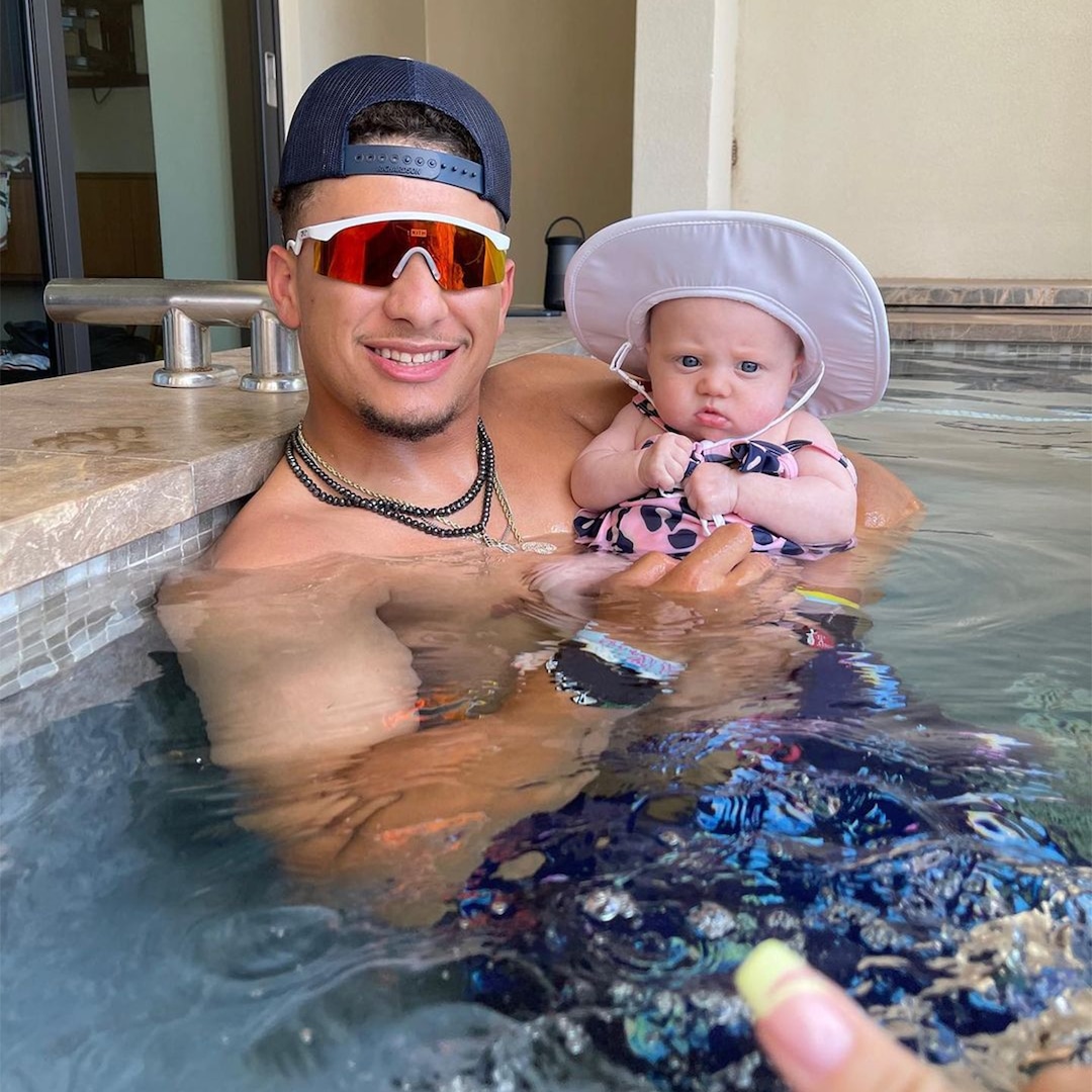 Patrick, 26, shared several adorable pics of the now-toddler, including one showing her sitting on a carpet in a onesie that reads, “My daddy plays football better than your daddy.” Another pic shows the proud dad sitting in a pool with his baby girl.