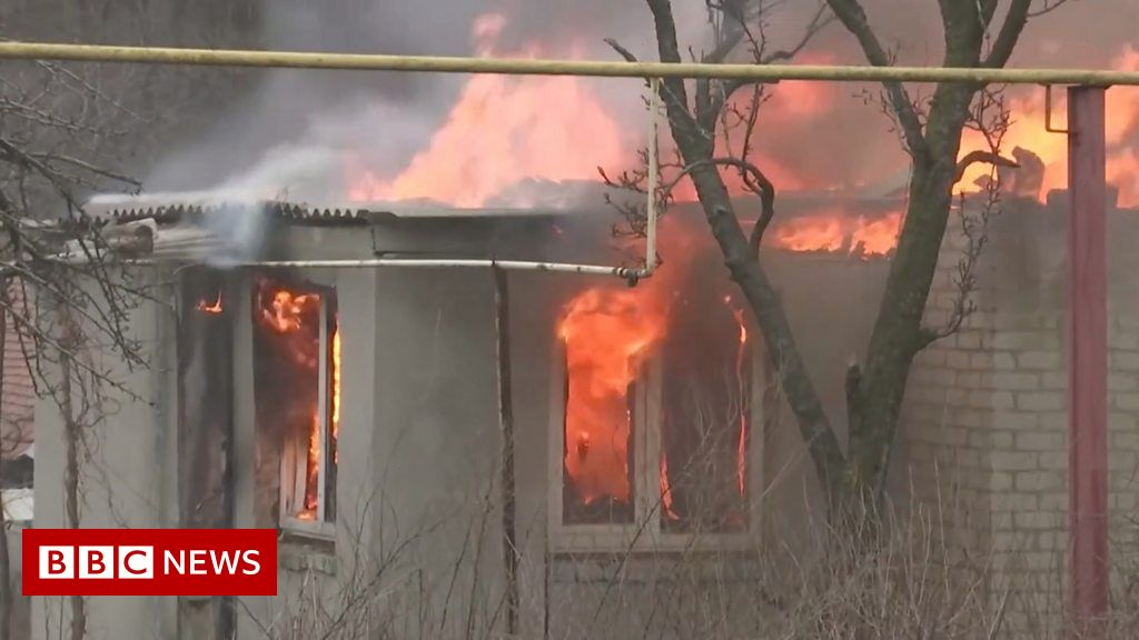 Buildings were on fire and cars were destroyed after shelling in the separatist-controlled city of Donetsk