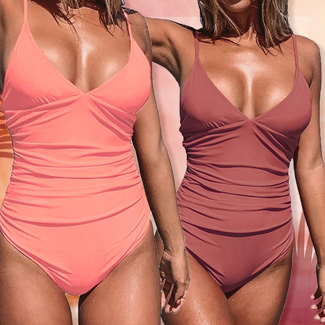 “I am so in love with this suit! The color and fit is perfect. Great quality too! The ruching is so flattering and makes my stomach look flatter. I am 5’3″ 145lbs usually a size 6 or small/medium and I ordered a medium which fit great on me! If you’re a lot more blessed in the chest area then I’d size up.”