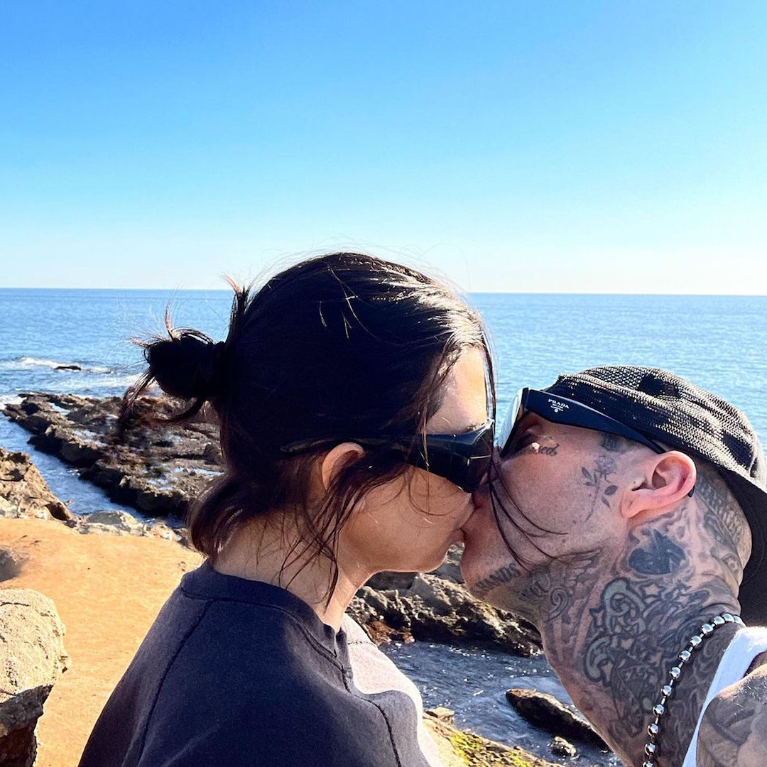Kourtney Kardashian and Travis Barker packed on the PDA during yet another romantic getaway to Laguna Beach, Calif. The Blink-182 drummer, 46, posted a pic to Instagram of him locking kips with the reality star, 42, on the scenic beach in the O.C..