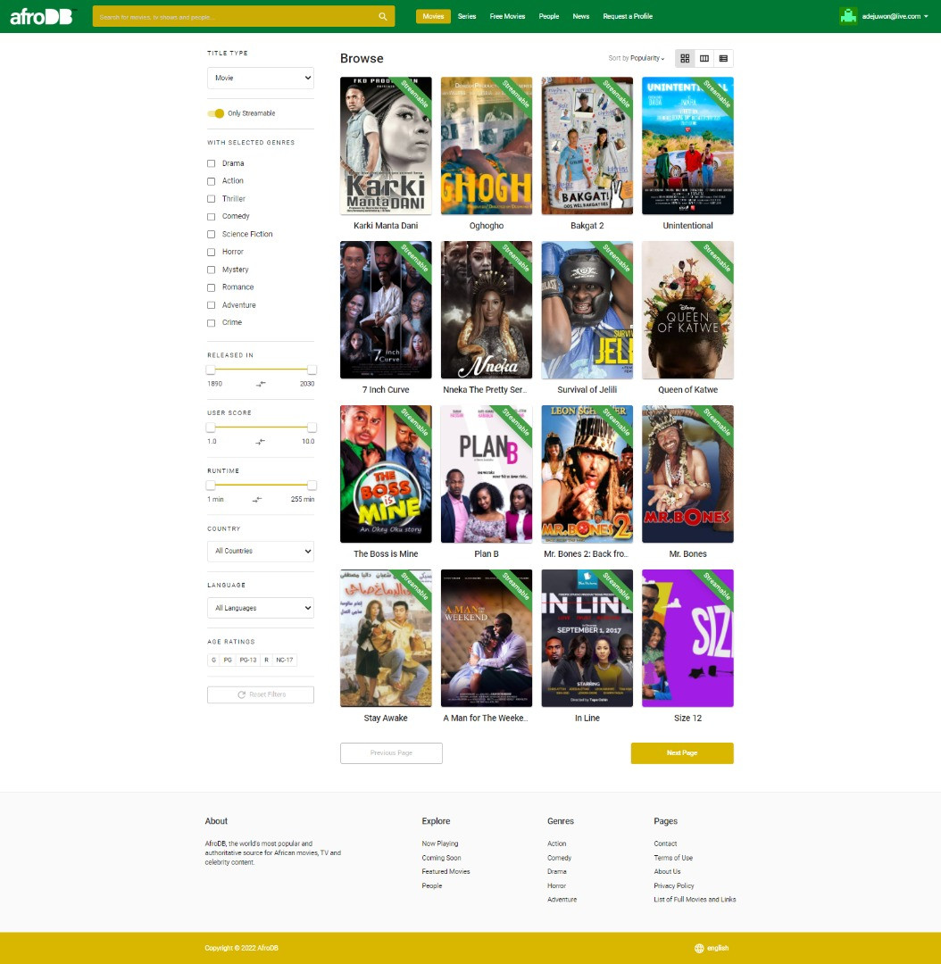 Today where a person's user experience is of utmost importance, finding a platform where all your film and entertainment needs will be satisfied, although these might seem like a tall order. Several international media try to meet users' needs with very little success. There is no tailor-made African content that serves as a one-stop shop for African film content. AfroDB is a fan-based website customized in a mainstream way of accessing information on film and television. The streaming service integrates into the same website that provides movie reviews, ratings, filmographies, and entertainment news.
