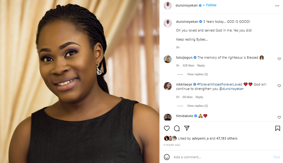 Popular Gospel artiste, Dunsin Oyekan, has taken to his Instagram page to remember his wife, Doyin, who passed away exactly three years ago today, May 18. Late Doyin died on May 18, 2019, leaving behind her husband and two children. Posting a photo of Doyin on his IG page, Dunsin wrote;''3 Years today… GOD IS GOOD!Oh you loved and served God in me. Yes you did!Keep resting Bybes…'' The post Gospel artiste, Dunsin Oyekan remembers his wife three years after her demise appeared first on Linda Ikeji Blog. Click Here to Visit Orignal Source of Article http://www.lindaikejisblog.com/2022/5/gospel-artiste-dunsin-oyekan-remembers-his-wife-three-years-after-her-demise.html