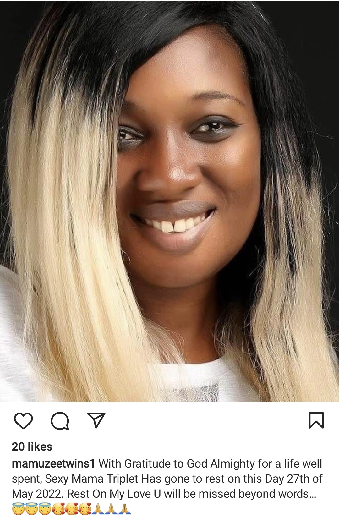 One half of the Singing duo, Mamuzee Twins has announced the death of his wife who passed away two days ago, May 27th. Taking to Instagram, he mourned his late wife with series of post."With gratitude to God Almighty for a life well spent, sexy mama triplet has gone to rest on this day 27th of May 2022. Rest on my love. You will be missed beyond words…" he captioned one May her soul rest in peace…amen