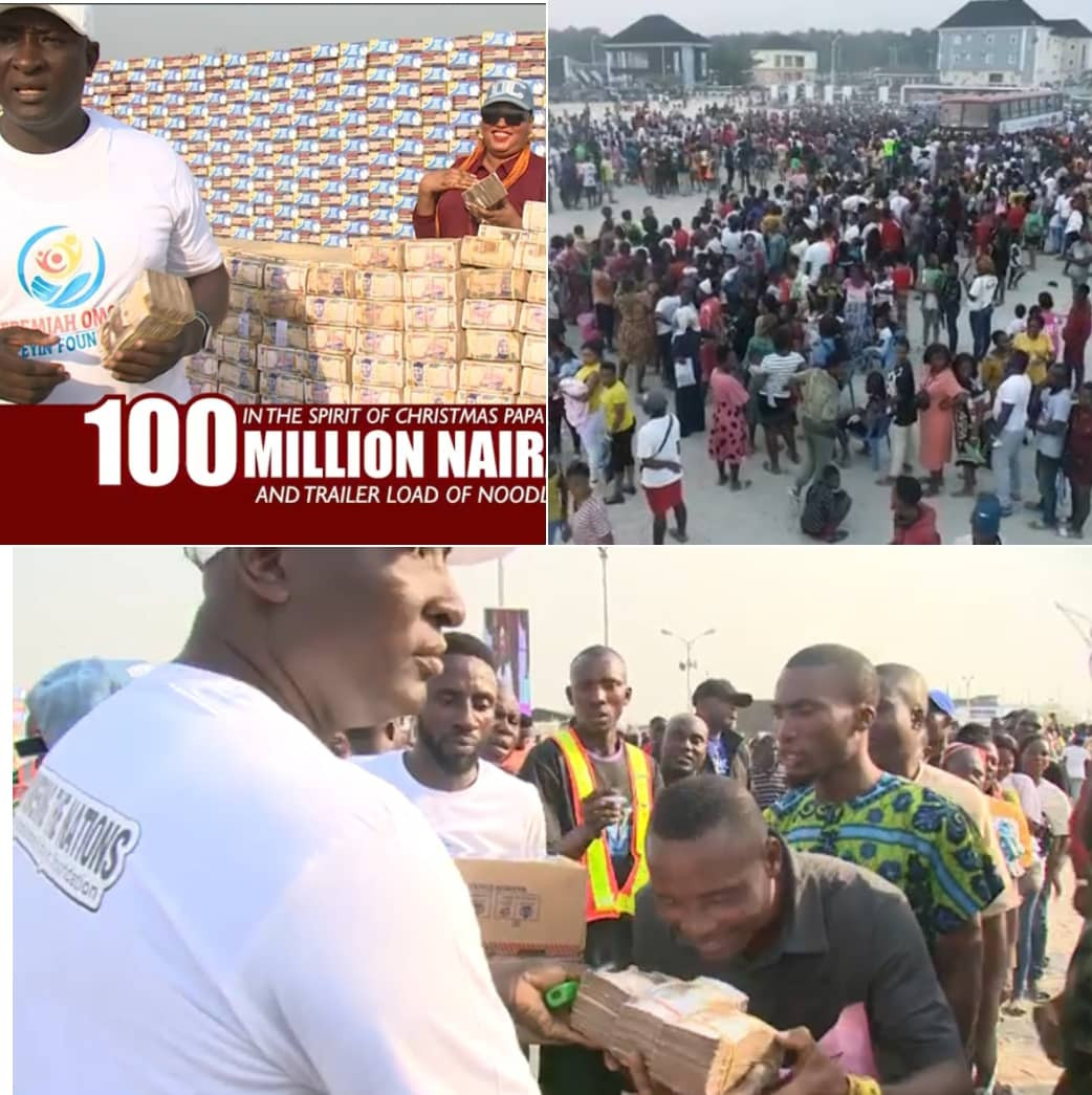In a trending video on Twitter, the popular prophet Jeremiah Omoto Fufeyin is seen distributing food, noodles and over 100 million naira cash gift to thousands of Nigerians as they celebrate love and the birth of our Lord and Savior Jesus Christ.