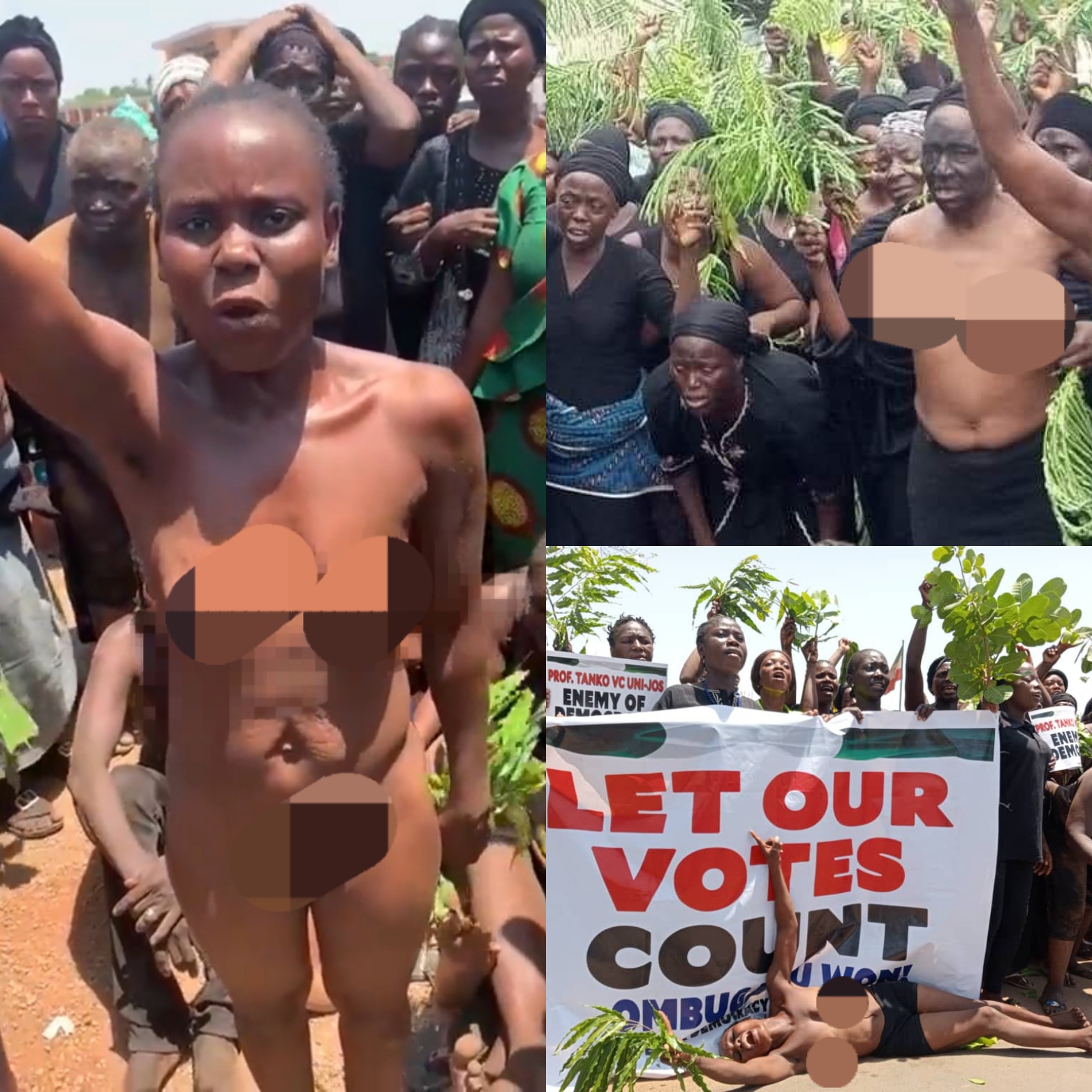 The reason for their protest was that INEC went ahead to announce a winner of the governorship election when there was contention in the results that emanated from Gayam and Ciroma electoral wards in the state capital. Some of the women wore black while protesting. Others stripped completely naked and bitterly expressed their displeasure in front of the camera.