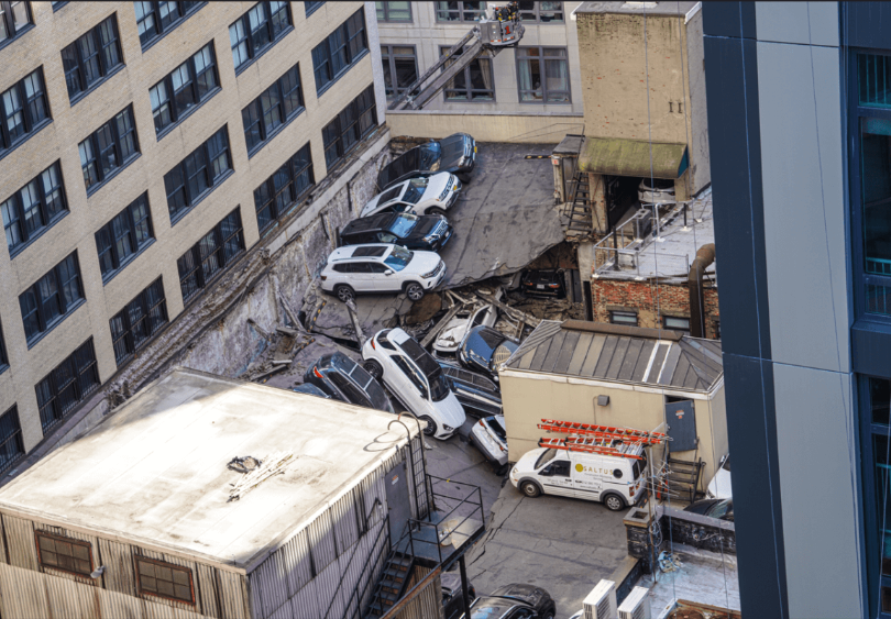 Video from the initial aftermath of the collapse showed a woman screaming: Get out! People were also trapped in the elevator shaft which caved in. There are initial reports of three injuries, two minor, one serious but not life-threatening, reports NBC New York.