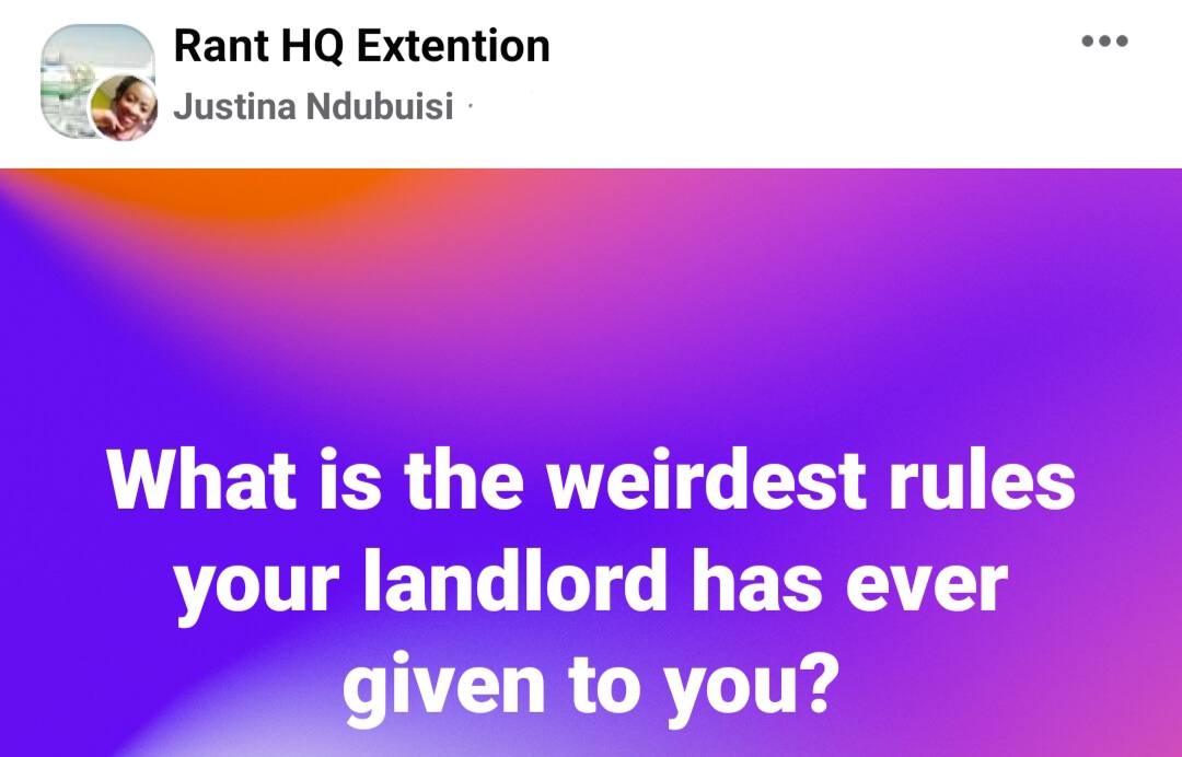 Nigerians have taken to social media to reveal some of the weird rules their landlords gave them when they moved in as tenants. They shared the many reasons while responding to a question posed by a Facebook user, Justina Ndubuisi. Many revealed that their landlords instructed them never to turn on their generators beyond 9pm. Some said their landlords banned them from carrying out laundry in their bathrooms so they do not fill up the soakaway with water. Some Nigerians mentioned that their landlords banned them from having visitors spend the night in their homes. One person mentioned that his landlord instructed them to always participate in an all-night vigil that holds every last Friday of the month. One mentioned that the landlord warned against masturbating in his property. Read the various accounts below
