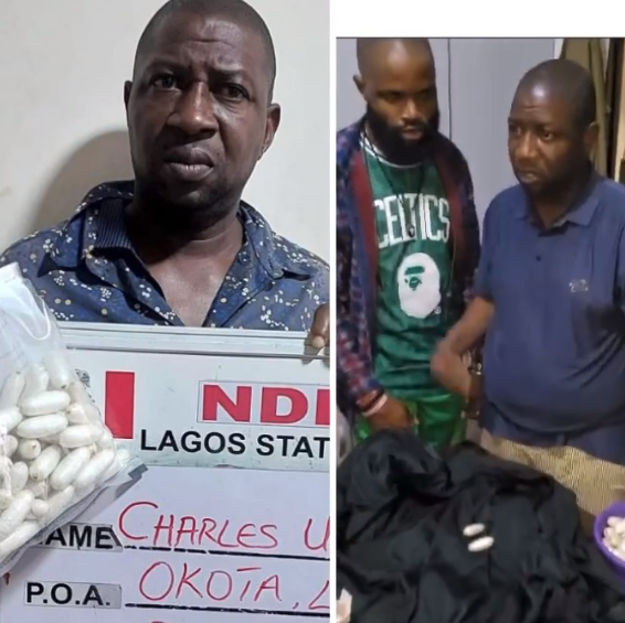A notorious drug kingpin who specializes in sponsoring young Nigerians to traffic Class A drugs to Europe especially Italy, has been arrested after operatives of the National Drug Law Enforcement Agency, NDLEA, stormed his hotel room in Okota area of Lagos late on Friday July 21 when he was preparing a recruited courier to swallow 93 pellets of cocaine meant for distribution in Italy. A statement released by NDLEA spokesperson, Femi Babafemi, says the 48-year-old drug kingpin, Charles Uwagbale, had recruited Uju Dominic, 35, from his base in Italy with a deal to come to Nigeria, ingest 100 pellets of cocaine on Friday 21st July and return to Italy on Saturday 22nd July. True to plan, upon the arrival in Nigeria, the mule was lodged in Golden Heaven Hotel located at Enoma street off Ago-Palace way, Okota, Isolo, Lagos where Uwagbale brought 93 wraps of the Class A drug for him to swallow at about 23:45pm Friday night.They were in the process when NDLEA operatives who have been on their trail following credible intelligence stormed their hotel room, arrested both and recovered the drug exhibits with a total weight of 1.427 kilograms.” Babafemi said