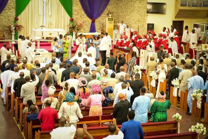 The eldest son of former Deputy Senate President, Ike Ekweremadu, and wife, Beatrice, Lloyd Ike Ekweremadu Jnr, got married to his woman, Tiffany Adaobi Obinna-Uzor, at the Basilica of Grace, Anglican Communion, Gudu District Abuja, today August 19. The wedding ceremony was well attended by dignitaries including deputy Speaker of the House of Representatives, Benjamin Kau, former Senate President Bukola Saraki, Governor Ademola Adeleke, former Senate President David Mark and a host of others. The Ekweremadus were absent as they are currently in the UK serving jail terms after they were found guilty of organ trafficking. Read here. See more photos from the wedding below