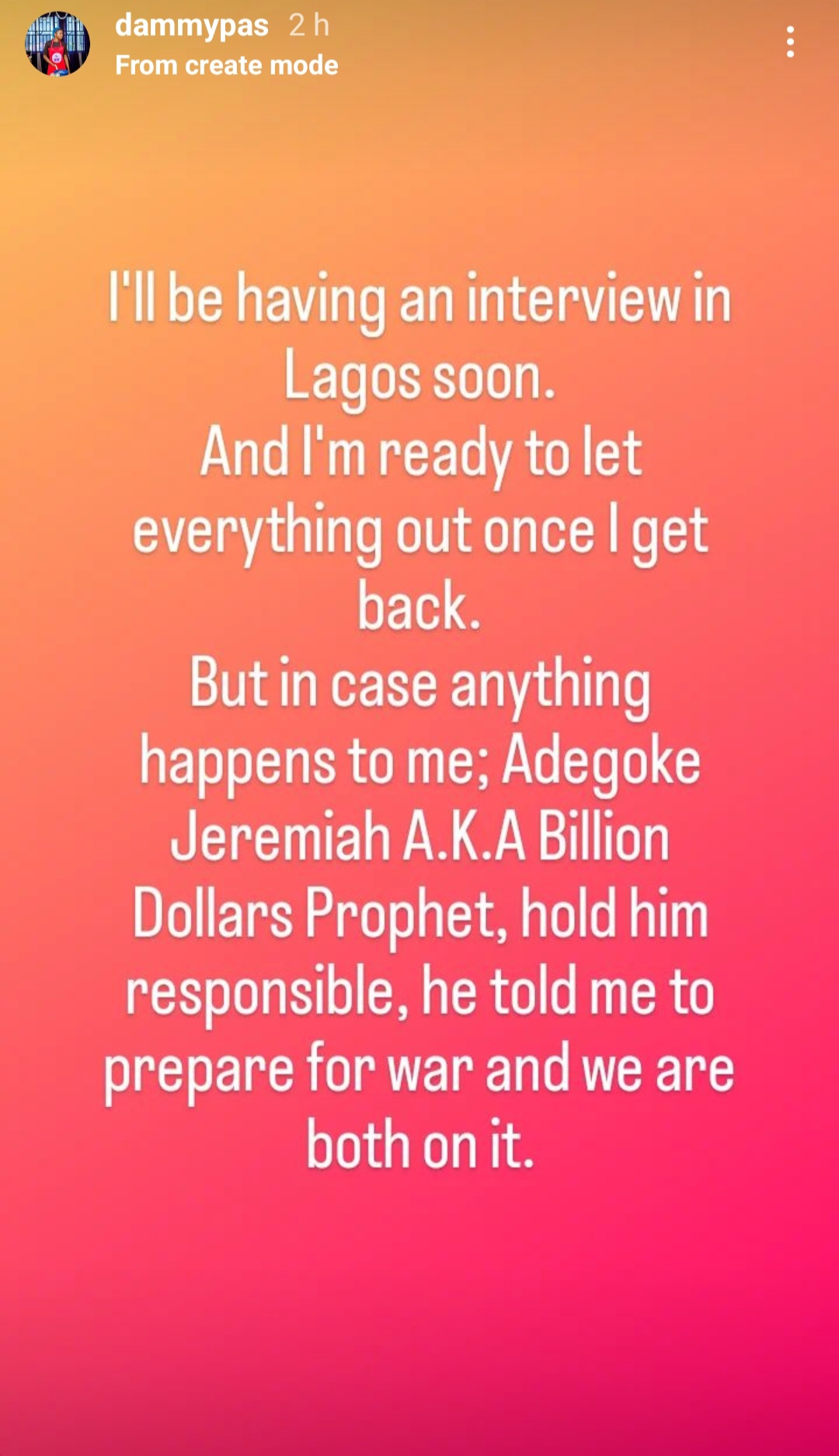 Damilola Adeparusi, better known as Chef Dammy, has called on the public to hold her pastor responsible if anything happens to her. The Ekiti Chef became a viral sensation in June 2023 for participating in a cook-a-thon organised by the pastor of her church Adegoke Jeremiah, aka Billion Dollars Prophet. Now, Dammy has raised alarm about a threat to her life. In an earlier post, she alleged that people of God are threatening her life (read here). In a follow-up post, she named her pastor as the person threatening her life. She added that she would be in Lagos to grant an interview to let everything out. However, she warned that if anything happens to her, her pastor should be held responsible. See below.