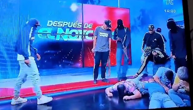 One of the hooded men who attacked the set reportedly said: ‘We are on the air so that they know that we do not play with the mafia.’ After about 30 minutes of chaos, police officers were seen entering the studio . Ecuador’s Police said on X, formerly Twitter, that some units were deployed to the media facilities.