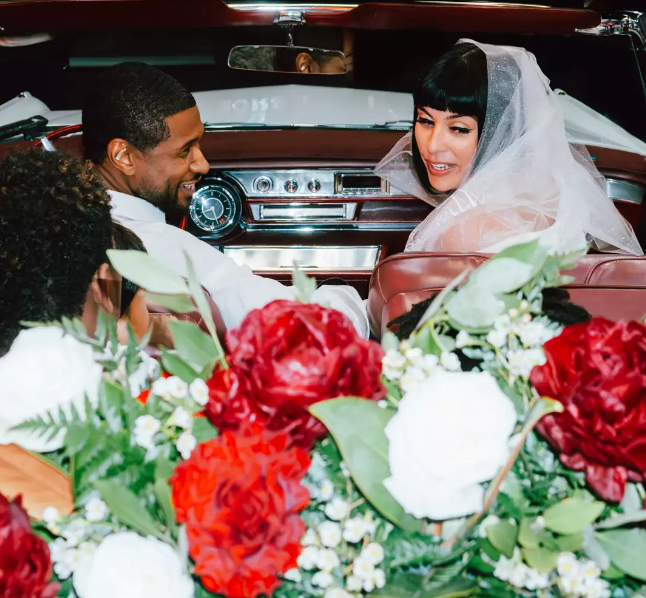 Usher and Jennifer Goicoechea secretly said “I do” on Sunday, Feb. 11, after the Super Bowl. According to People, Usher, 45, who headlined the 2024 Super Bowl married his music executive girlfriend, 40, in an intimate Las Vegas wedding. Not long after Usher left the biggest stage in the world headlining the Super Bowl halftime show at Allegiant Stadium in Vegas, he and longtime girlfriend Goicoechea made their way a few miles up the road to Vegas Weddings’ drive-thru tunnel The Fast Lane. There, they tied the knot. “We can confirm that Usher and Jennifer Goicoechea took the next step in their relationship and did get married on Sunday night in Las Vegas surrounded by close friends and family,” a representative for the singer told People in an exclusive statement. “They both look forward to continuing to raise their children together surrounded by love and thank everyone for the well wishes.” In the new photos shared with the publication from the happy day, the Usher beams at Goicoechea, who is holding a bouquet of red peonies and white roses, which match a red flower affixed to Usher’s lapel. See below.