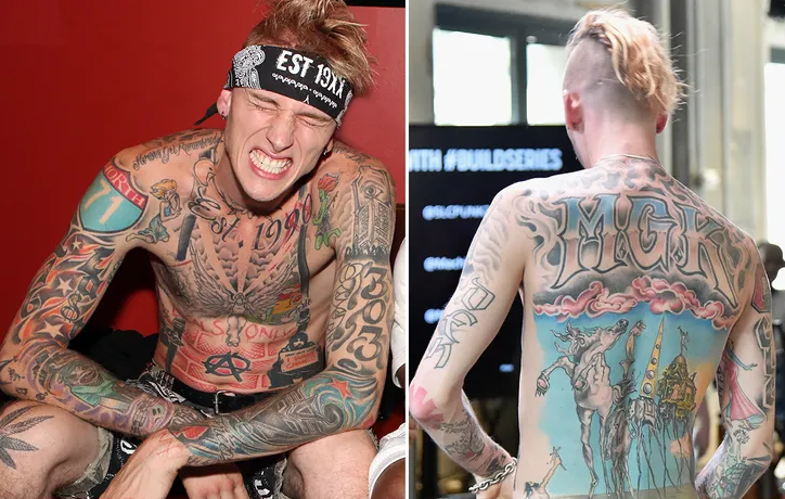 MGK before Machine Gun Kelly’s decision to undergo this transformation was a deeply personal one, according to his tattoo artist ROXX who did this job for the artist. The artist told TMZ that MGK had a “spiritual consultation”. MGK explained to her that all his tattoos were too chaotic for him now and he was seeking change and order in his life.