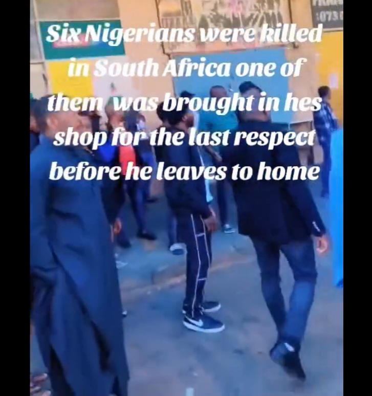 A number of South Africans online are rejoicing after 6 Nigerians were killed in their country. A video was shared online showing Nigerians paying their last respects as the body of one of the victims was taken to his shop for the last time before returning it to Nigeria.Reacting to the video, South Africans hailed the people who killed the Nigerians. However, they complained that 6 dead Nigerians are not enough and called for more Nigerians to be killed. _1716671784.jpg)