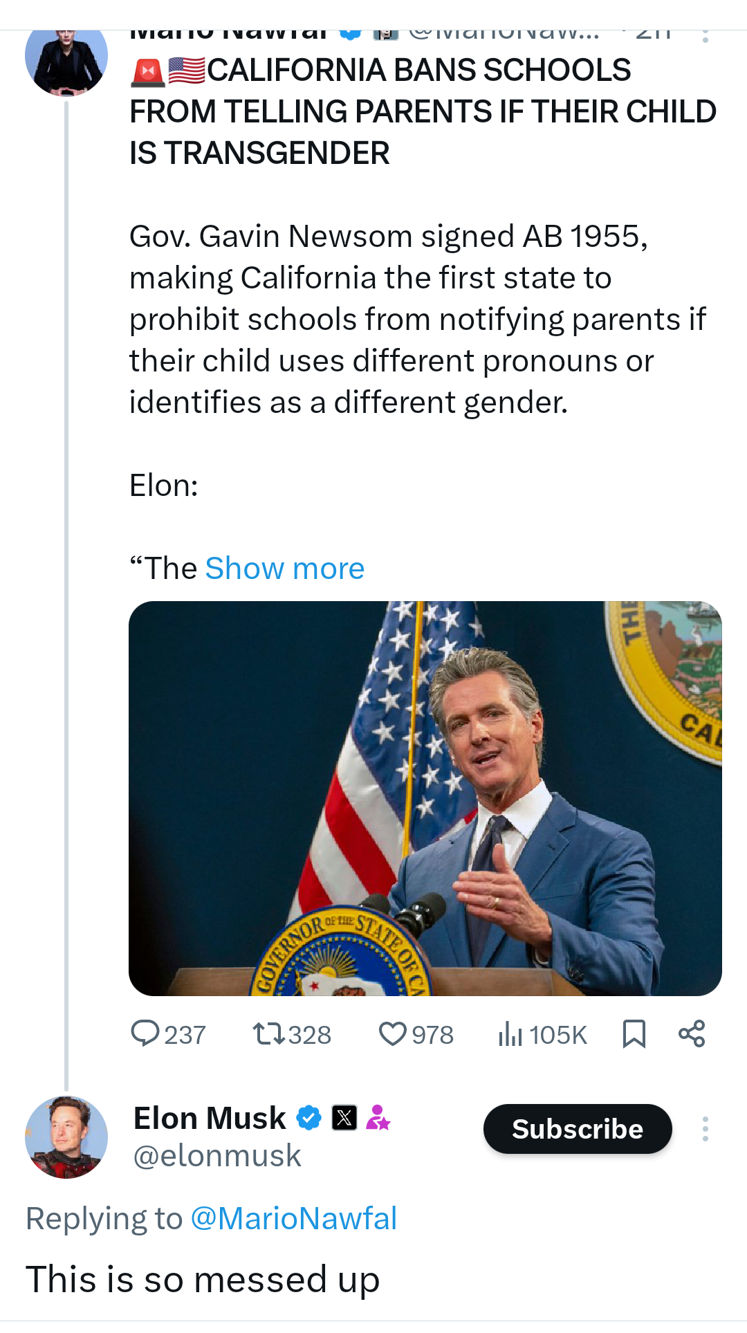 Musk was behind Tesla’s recent move to Texas as well, and previously vowed to move SpaceX’s business incorporation from Delaware to the Lone Star state.. The post Elon musk moves his company HQ from California to Texas in response to new law banning schools from telling parents their child is tr@nsg3nder appeared first on Linda Ikeji Blog. Click Here to Visit Orignal Source of Article http://www.lindaikejisblog.com/2024/7/elon-musk-moves-his-company-hq-from-california-to-texas-in-response-to-new-law-banning-schools-from-telling-parents-their-child-is-tr-at-nsg3nder-2.html