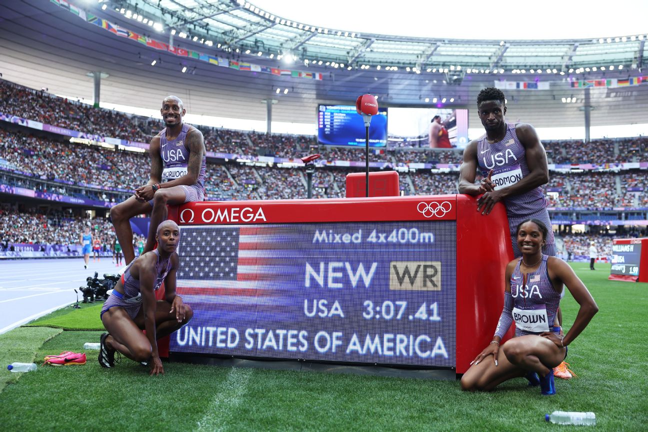 The team of Vernon Norwood, Shamier Little, Kaylyn Brown and Bryce Deadmon set a world record in the 4×400-meter mixed relay.Click Here to Visit Orignal Source of Article https://www.espn.com/olympics/story/_/id/40708986/team-usa-sets-new-world-record-4×400-meter-mixed-relay