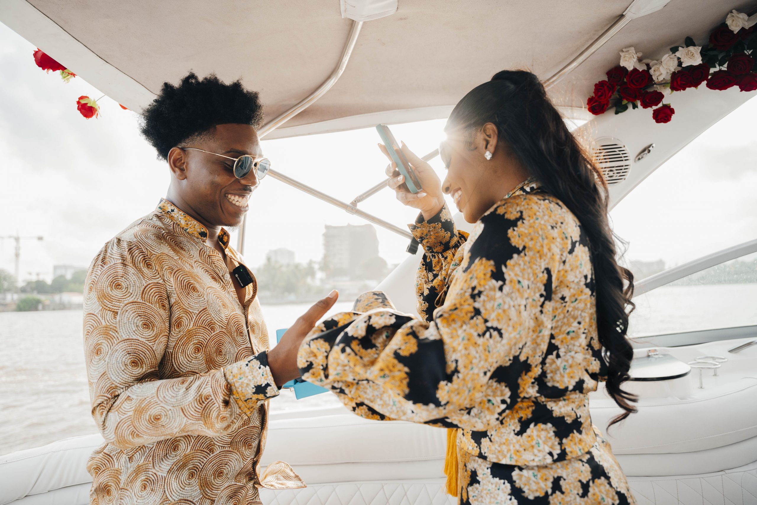 Step into a world of opulence and sophistication as two of Nigeria’s most affluent Igbo families merge in a fairytale engagement that has captivated hearts far and wide. The union of oil magnate Dr. Ernest Azudialu’s OBIEJESI’s daughter, Kene, and the esteemed business mogul and CEO of Ekulo Group, Chief Dr. Emmanuel Chukwuemeka Okonkwo’s son, Ugo, is nothing short of a spectacle. Picture this: a lavish proposal set against the backdrop of Lagos, where the star-crossed lovers met. A romantic rose-themed boat cruise served as the stage for Ugo’s heartfelt proposal to Kene, both resplendent in custom Banke Kuku ensembles. The enchanting moment was followed by a surprise luxury engagement dinner, an exclusive strictly by invitation affair attended by a select few, radiating elegance and refinement. The evening unfolded like a dream, with an orchestra serenading the guests, a culinary masterpiece crafted by the renowned Chef tucker, and exquisite decor by Event by Toya. Among the distinguished guests were luminaries such as designer Banke Kuku, influencer Diana Eneje, former Big Brother Naija winner Mercy Eke, fashion figure Ozinna, and Afrobeats sensation Vector the Viper. The event was expertly hosted by the talented Chigurl, who graced the occasion with a special performance dedicated to the couple. In a world where engagements often follow predictable patterns, this meticulously orchestrated proposal and engagement dinner shone as a beacon of originality. The meticulous attention to detail and the grandeur of the evening alone are estimated to have surpassed 20 million naira, a testament to the couple’s dedication to crafting an unforgettable experience. As we raise a toast to the engagement of the year, we extend our heartfelt congratulations to the radiant couple and wish them abundant blessings as they embark on this new chapter together.THE PROPOSAL PICTURES