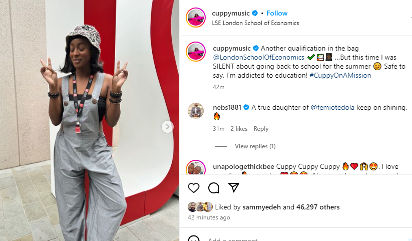 Billionaire businessman, Femi Otedola’s daughter, Florence Otedola aka DJ Cuppy has bagged a degree from the London School of Economics. She disclosed this on her Instagram page today September 6. She said;Another qualification in the bag @LondonSchoolOfEconomics But this time I was SILENT about going back to school for the summer Safe to say, Im addicted to education! #CuppyOnAMission” The post DJ Cuppy bags degree from London School of Economics appeared first on Linda Ikeji Blog. Click Here to Visit Orignal Source of Article http://www.lindaikejisblog.com/2024/9/dj-cuppy-bags-degree-from-london-school-of-economics-2.html