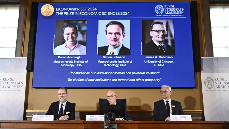 The Nobel memorial prize in economics was awarded Monday to three economists who have studied why some countries are rich and others poor and have documented that freer, open societies are more likely to prosper. Click Here to Visit Orignal Source of Article https://www.ctvnews.ca/business/nobel-economics-prize-goes-to-3-economists-who-found-that-freer-societies-are-more-likely-to-prosper-1.7073276